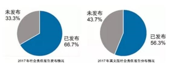 《报告》对中央企业发布的2017年社会责任报告进行了统计。研究显示,截至2018年底,64家中央企业发布了《2017年企业社会责任报告》。其中36家中央企业发布的报告采用中文和英文两种语言,占已发布报告中央企业数量的56.3%,报告的国际化程度不断提高。中国移动通信集团有限公司、中国海洋石油集团有限公司、中国石油天然气集团有限公司等32家中央企业在社会责任报告中专门设置了“海外社会责任”等专题。分析发现,部分中央企业突破传统的文字形式,运用视频等多媒体形式展现其社会责任建设情况,达到良好的传播效果。(见图5、表2)
