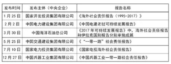 表2:中央企业2017年发布海外社会责任专题类和国别类报告列表