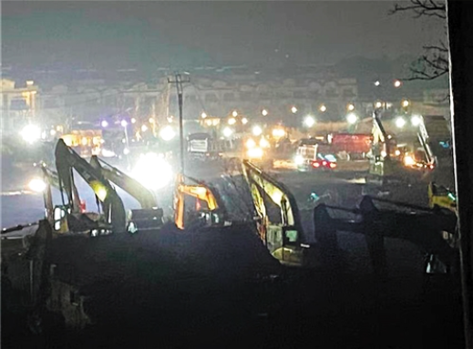 中建三局、武汉建工等央企国企正争分夺秒施工,与时间赛跑。目前已投入上千人,上百台套机械设备,按照两班倒方式推进工作。施工人员的年夜盒饭都是在工地上吃的,以腾出更多时间搞建设。