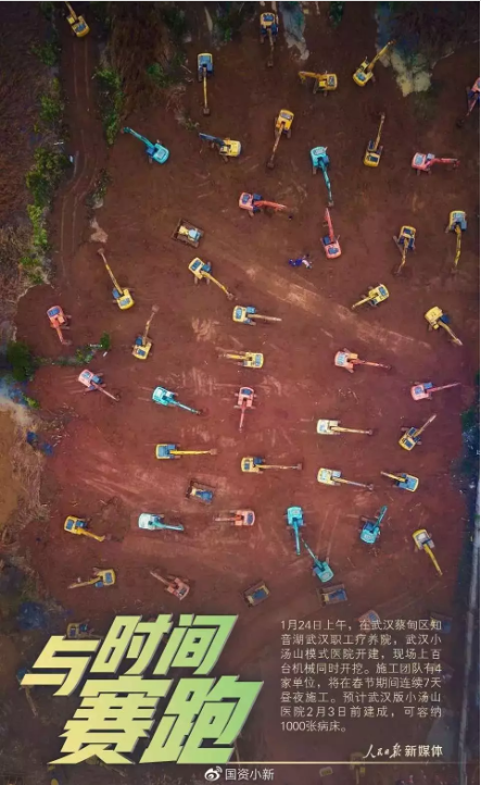 就在黄锡璆和同事继续优化设计方案的同时,由中建三局牵头,武汉建工、武汉市政、汉阳市政等企业的数百名员工和上百台施工机械火速汇聚,火神山医院场地平整工作开始启动。