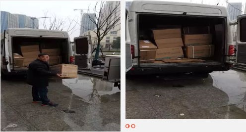 1月25号,大年初一,南京国大物流部接到采购部人员的电话,一批口罩抵达南京,但由于正逢春节,快递物流送货不及时,货品放置在幕府南路,物流部了解到具体情况之后,于1月26日大年初二,派物流人员冒雨提货,将所有的物品装了满满的一车拉回仓库进行分发,确保将防疫产品及时发放门店。