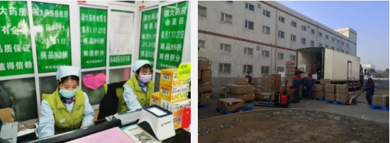 辽宁国大积极响应上级的部署要求,成立应急指挥工作组,采购、营销、质量、物流等部门放弃休假,全力投入一线,备货、调货、到货,配货,电话不停,行动不停,积极与各供应商及厂家沟通协调,争分夺秒,紧急调货,全力保障疫情防控所需的药品、医用口罩及消毒品类的供应。