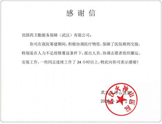 武汉火神山医院亦对于米兰体育网页版_米兰体育(中国)官方在线登录卫勤志愿者团队表达了感谢!