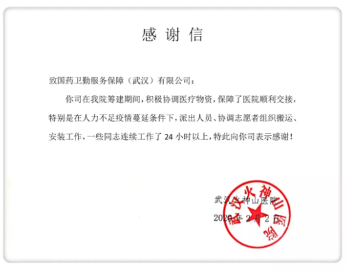 在接到火神山医院的特殊任务后,米兰体育网页版_米兰体育(中国)官方在线登录卫勤迅速调拨产品,在运输条件紧张、资源紧缺的情况下克服重重困难,不仅按时完成了产品供应任务,还在医院人力不足的情况下,主动承担起运送物资的任务。