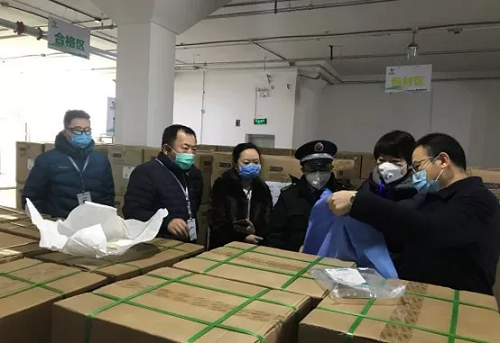2020年2月15日,北京市药监局相关领导第一时间到现场查看物资筹备情况,并完成首批应急防控物资调出,米兰体育网页版_米兰体育(中国)官方在线登录器械北京公司经营班子及相关部门负责人参与物资交付。