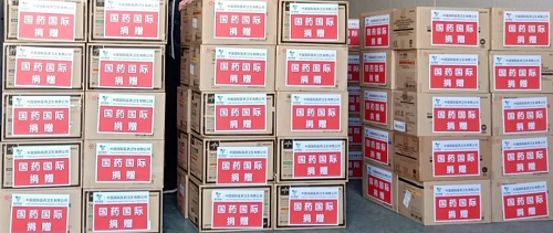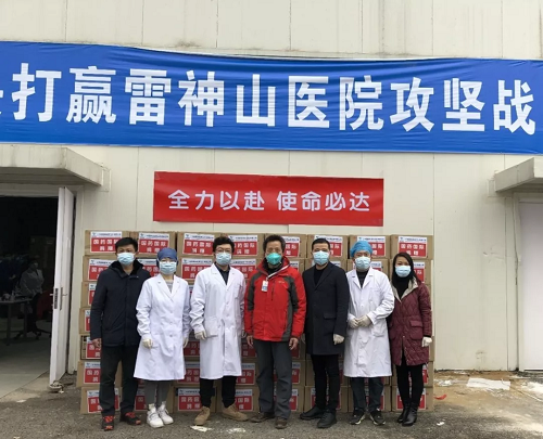 2月14日上午,中国国际医药卫生有限公司向雷神山医院捐赠丁腈检查手套60万只。雷神山医院相关负责人接受了捐赠。