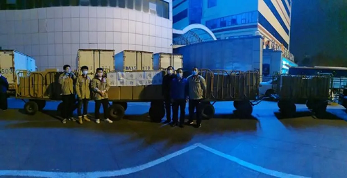 ——中国能建集团捐赠物资,2月15日高效完成了从北京首都机场入境落地、海关清关、机场和东四环两地提货到中铁起运的全部环节,2月16日早上9点武汉签收,全程仅用24小时。