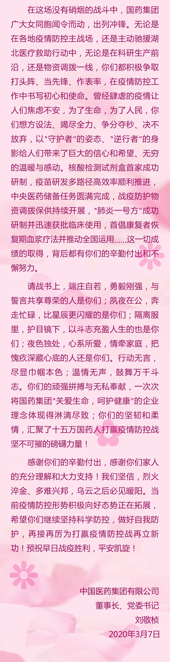 米兰体育网页版_米兰体育(中国)官方在线登录刘敬桢董事长致信慰问抗疫一线女同事们
