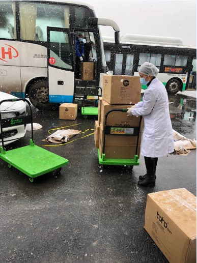 在接近零摄氏度的库房,他们冻得瑟瑟发抖,手冻麻木了,就搓搓继续;身上单薄的隔离服就是他们唯一的“保暖衣”,就这样他们一刻没有停歇,奋战了整整48个小时!