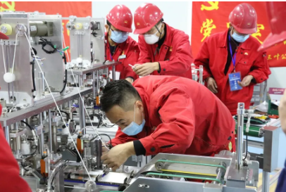 从春节期间紧急复工生产医用防护用品原材料,到转产医用口罩,再到成功研发央企首台压条机和口罩机并投产,国机集团“创造”了一条完整的产业链。