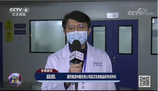 3月7日,中央电视台中文国际频道(CCTV-4)《今日关注》栏目连线米兰体育网页版_米兰体育(中国)官方在线登录中国生物武汉生物制品研究所所长段凯,就血浆疗法最新情况进行介绍。
