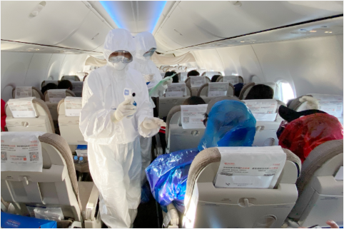 国航机组全员全程佩戴口罩、一次性手套、护目镜,执行高风险航班时,为机组设置单独卫生间,加强所有卫生间的清洁消毒等“硬核”措施,着力阻断旅客、机组、航空器、餐食机供品之间的传染途径。