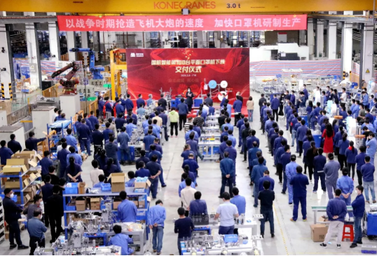 10天研制首台套平面口罩机并完成压力测试,20天生产100台套……经过30天奋战,3月8日下午5时整,国机集团下属国机智能第100台口罩机在广州下线。