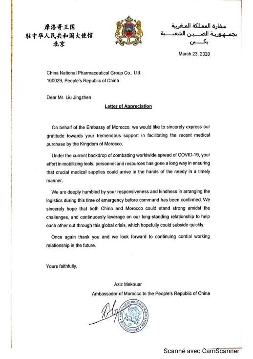 摩洛哥驻华大使盛赞米兰体育网页版_米兰体育(中国)官方在线登录在防疫物资供应方面对摩洛哥的巨大帮助......