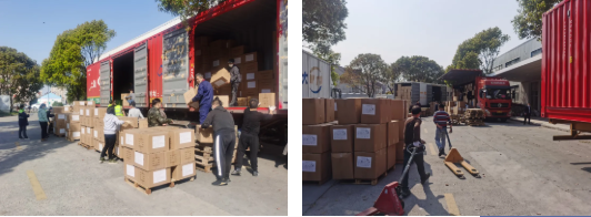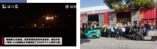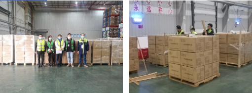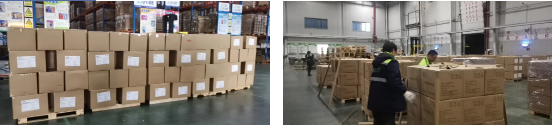 物流中心徐荣经理立即通知刚完成561托口罩任务的第一批员工继续投入到新的任务中。12个小时的不间断工作,傍晚20时,援外物资顺利运送到浦东机场自贸区仓库。