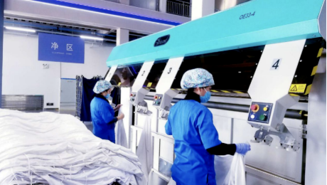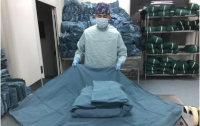 国控创服研制成功可复用隔离衣,克服春节期间用工、原材料、物流等困难,连夜赶制1万多件可复用隔离衣支援湖北。同时为雷神山医院提供医用织物及洗消服务。