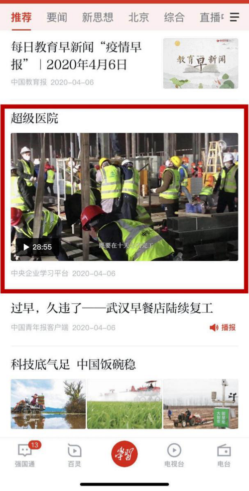 “学习强国”平台首发《超级医院》