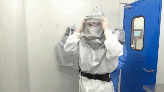 在新冠灭活疫苗车间,经过更换防护服、进消毒间等几道程序后,进入负压车间,密布着各式密封罐、密封管道和双保险阀门。车间工作人员现场为记者模拟演示灭活疫苗在生产运输中如何保证安全进入“蜂巢”。