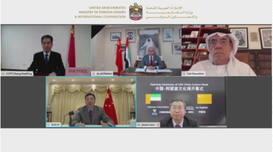 文化周开幕仪式由阿联酋驻华大使阿里·扎希里阁下主持,与会嘉宾包括阿联酋国务部长扎基·安瓦尔·努塞贝赫阁下、中国驻阿联酋倪坚大使、中国国际贸易促进委员会张慎峰副会长和中国医药集团有限公司刘敬桢董事长。