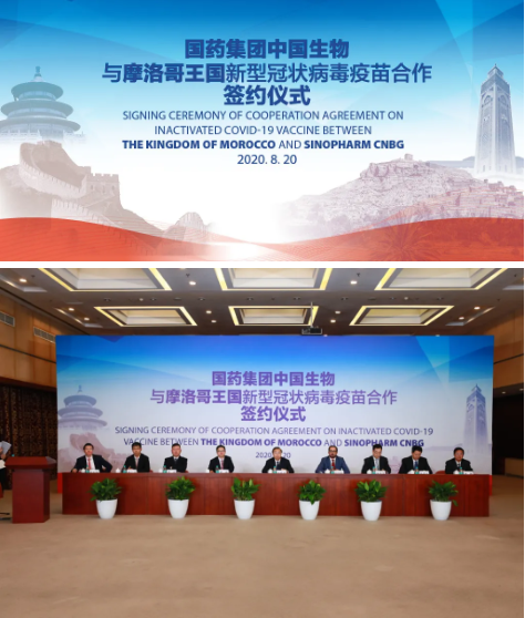 8月20日下午,米兰体育网页版_米兰体育(中国)官方在线登录中国生物与摩洛哥王国新型冠状病毒疫苗合作签约仪式在北京、拉巴特两地,以视频会议方式同步举行。这是继获得阿联酋、秘鲁临床试验批件后的又一重要进展,标志着米兰体育网页版_米兰体育(中国)官方在线登录中国生物国际临床试验进程全面提速。双方将通过团结合作战胜疫情,为共同构建人类卫生健康共同体做出不懈努力。