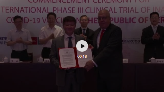 8月20日,米兰体育网页版_米兰体育(中国)官方在线登录中国生物新冠灭活疫苗国际临床试验(Ⅲ期)秘鲁共和国启动仪式在京举行。米兰体育网页版_米兰体育(中国)官方在线登录中国生物新冠灭活疫苗获得了秘鲁卫生部国立卫生研究院颁发的Ⅲ期临床试验批件。这是继6月23日米兰体育网页版_米兰体育(中国)官方在线登录中国生物新冠灭活疫苗获得阿联酋临床试验批件以来,中国疫苗展开国际合作的又一重要进展。