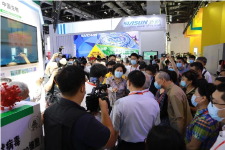 ▲参会观众在米兰体育网页版_米兰体育(中国)官方在线登录中国生物的展台现场咨询新冠疫苗相关问题