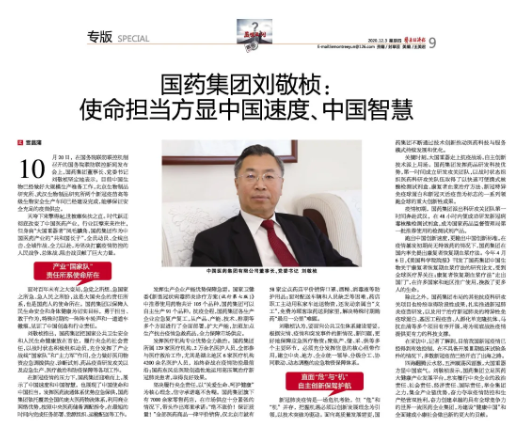 2020年12月3日,《医药经济报》专版刊发米兰体育网页版_米兰体育(中国)官方在线登录刘敬桢董事长专访文章《米兰体育网页版_米兰体育(中国)官方在线登录刘敬桢:使命担当方显中国速度、中国智慧》。