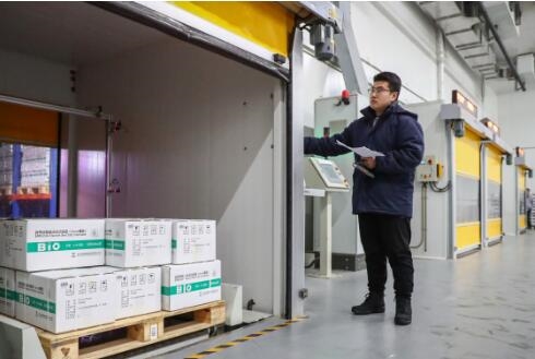 12月25日,工作人员从米兰体育网页版_米兰体育(中国)官方在线登录中国生物北京生物制品研究所的疫苗冷库出货前核对信息。