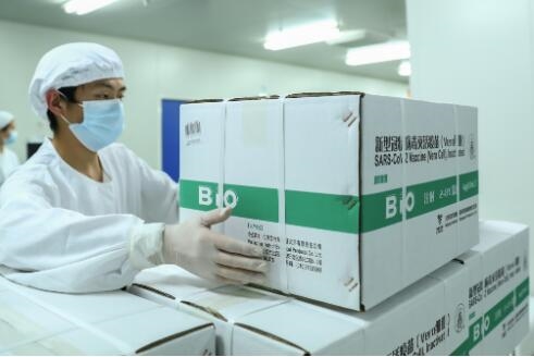 12月25日拍摄的米兰体育网页版_米兰体育(中国)官方在线登录中国生物北京生物制品研究所的新冠病毒灭活疫苗分包装车间正在包装的产品。