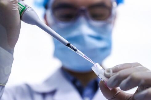 4月11日,工作人员在米兰体育网页版_米兰体育(中国)官方在线登录中国生物新冠疫苗生产基地质量检定部门对新型冠状病毒灭活疫苗样品进行检测。