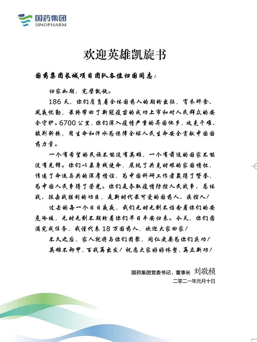 米兰体育网页版_米兰体育(中国)官方在线登录党委书记、董事长刘敬桢第一时间向凯旋归国的全体人员致信慰问。
