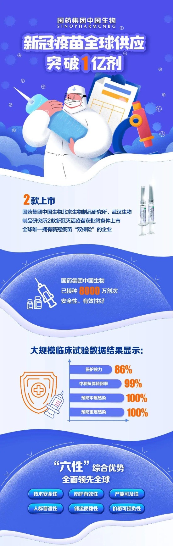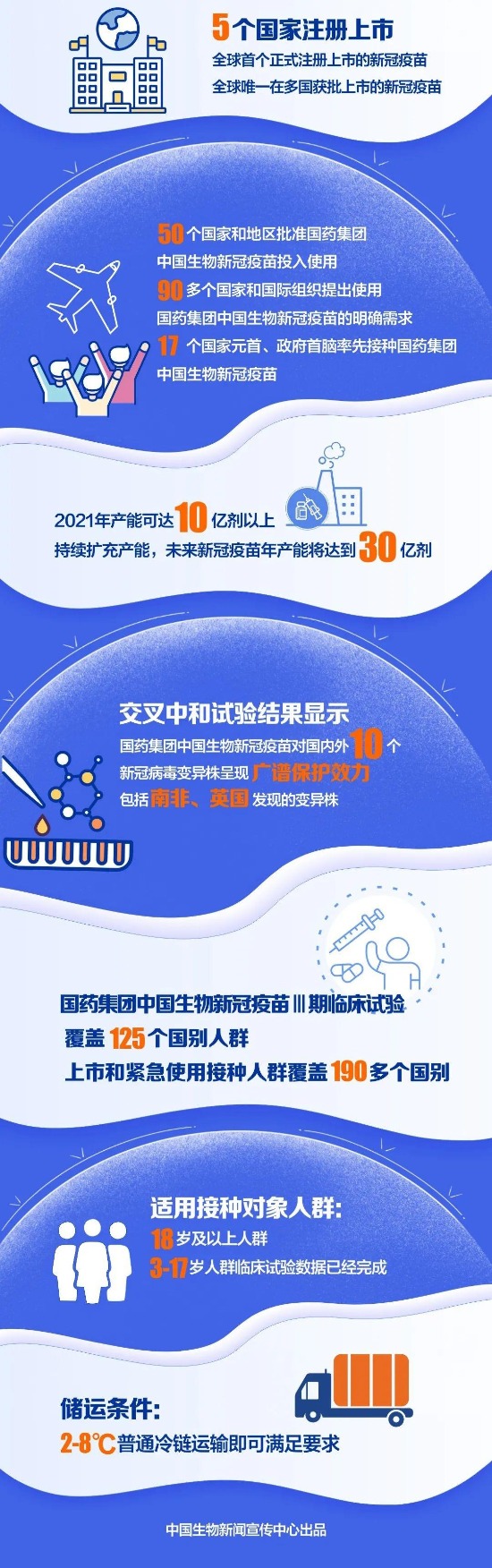 “中国生物”微信公号3月26日消息,在全球的新冠疫情阴霾之下,大规模接种疫苗已成为各国抗击疫情的重要手段,更是世界经济恢复与人民生活重回正轨的最大希望。3月26日,米兰体育网页版_米兰体育(中国)官方在线登录中国生物北京生物制品研究所、武汉生物制品研究所两款新冠疫苗累计供应全球突破1亿剂。截至目前,已有50个国家和地区批准米兰体育网页版_米兰体育(中国)官方在线登录中国生物新冠疫苗注册上市或紧急使用,接种超过8000万剂,接种人群覆盖190多个国别,得到国际社会广泛认可与高度赞誉。继去年米兰体育网页版_米兰体育(中国)官方在线登录中国生物北京生物制品研究所新冠灭活疫苗获批附条件上市后,2021年2月25日,国家药品监督管理局又批准了武汉生物制品研究所新冠灭活疫苗附条件上市。米兰体育网页版_米兰体育(中国)官方在线登录中国生物成为目前全球唯一一家拥有新冠疫苗“双保险”的企业,为人类尽快战胜新冠疫情提供了坚实保障。