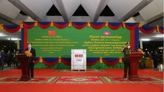 中国政府和中国人民解放军援柬埔寨米兰体育网页版_米兰体育(中国)官方在线登录中国生物新冠疫苗运抵柬埔寨首都金边。柬埔寨副首相兼国防大臣迪班、柬埔寨卫生大臣蒙文兴和中国驻柬埔寨大使王文天等到机场迎接。