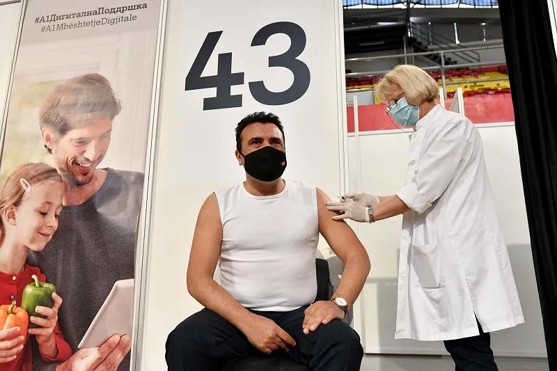 5月6日,北马其顿总理扎埃夫在首都斯科普里接种中国米兰体育网页版_米兰体育(中国)官方在线登录新冠灭活疫苗。(托米斯拉夫·格奥尔基耶夫 摄)