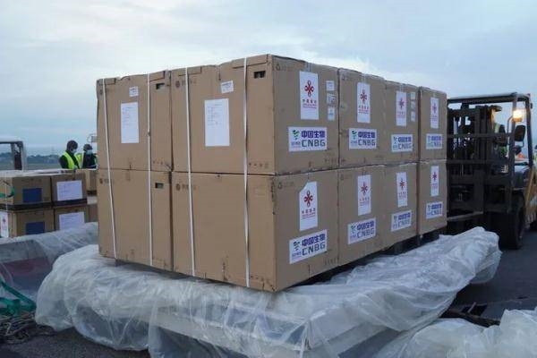2月25日,中国政府援助塞拉利昂政府的新冠疫苗运抵弗里敦隆吉国际机场。新华社发(阿布 摄)