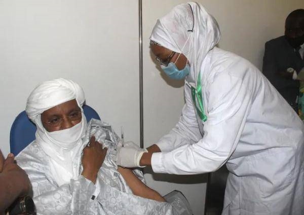 3月29日,尼日尔总理拉菲尼(左)在尼亚美接种首剂中国新冠疫苗。新华社发