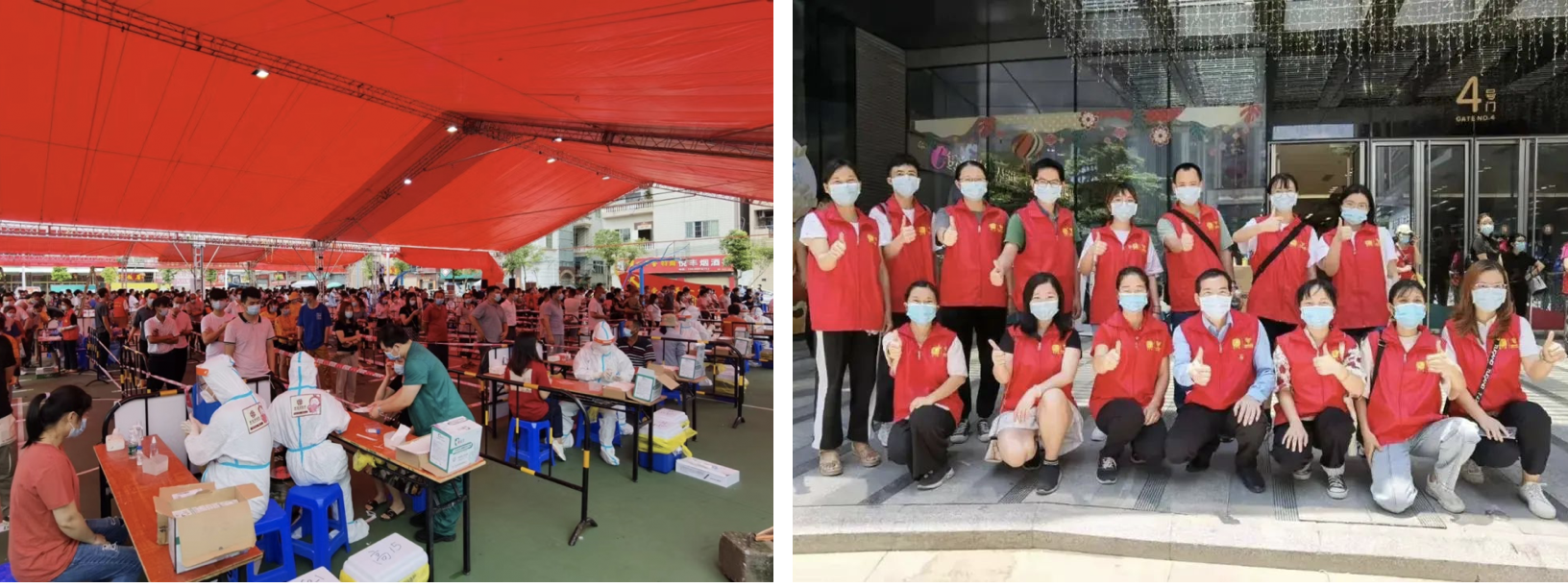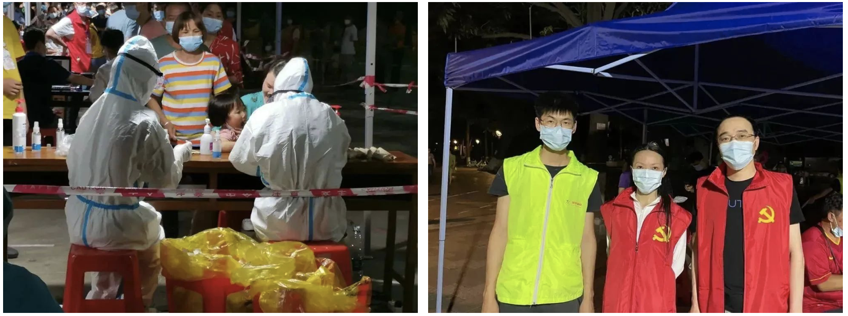 冯了性药业党支部奔赴上沙社区、郊边村核酸检测点,配合社区工作人员完成参检群众的情况登记,引导检测流程,维护现场秩序,助力提高检测效率。