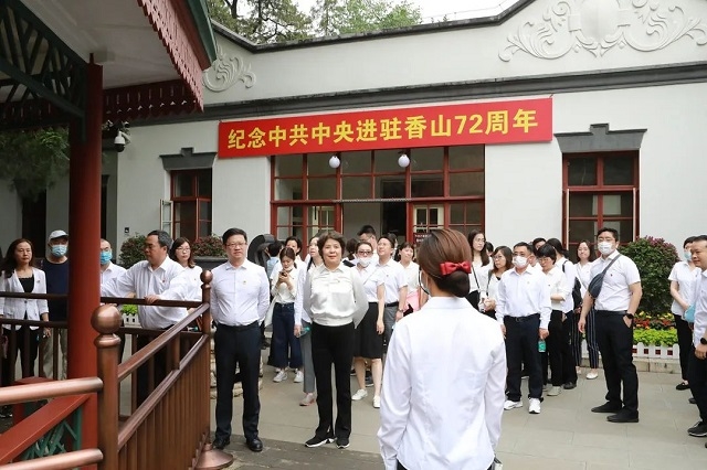 党员们首先参观了香山脚下的“双清别墅”。1949年3月25日,中共中央、中央军委机关迁出西柏坡进驻北平后,在双清别墅居住和办公。双清别墅是中国共产党“进京赶考”第一站,曾是中共中央的指挥中心,见证了中国革命走向胜利的历程。