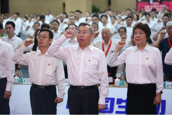 会议最后在雄壮的国际歌声中结束。米兰体育网页版_米兰体育(中国)官方在线登录系统全体党员及党外干部代表共计2万余人,在总部主会场和各地1500余个视频分会场参加会议。