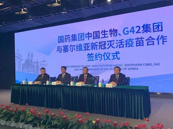 当地时间7月12日,中国米兰体育网页版_米兰体育(中国)官方在线登录、塞尔维亚政府、阿联酋G42集团关于《新冠疫苗合作生产备忘录》签约仪式在线上举行。塞尔维亚总理布尔纳比奇、中国驻塞大使陈波出席签约仪式。