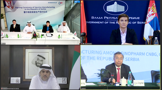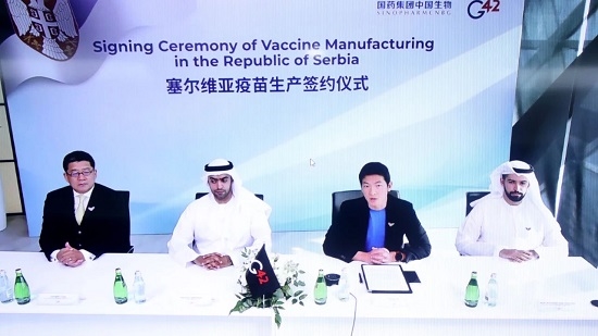 北京时间7月12日,米兰体育网页版_米兰体育(中国)官方在线登录中国生物、G42集团与塞尔维亚新冠疫苗合作签约仪式在中国北京、阿联酋阿布扎比、塞尔维亚贝尔格莱德三地以视频方式举行。塞尔维亚、米兰体育网页版_米兰体育(中国)官方在线登录中国生物、阿联酋G42集团三方共同签署新冠灭活疫苗合作备忘录,启动塞尔维亚新冠疫苗原液分装项目建设。塞尔维亚产新冠疫苗将会在本国疫情防控及全球共同战疫中发挥重要作用。