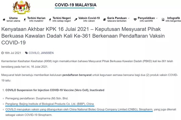 7月16日,马来西亚卫生部总监努尔·希沙姆宣布,马来西亚药品监管部门批准米兰体育网页版_米兰体育(中国)官方在线登录中国生物新冠疫苗附条件注册上市。