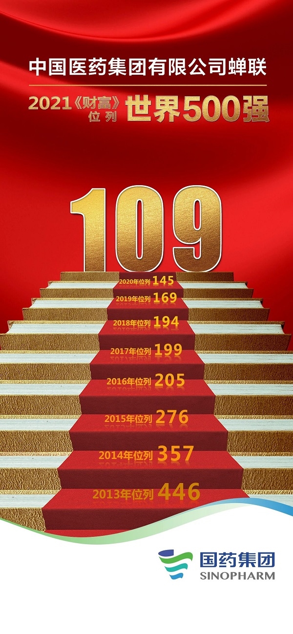 2021年8月2日,《财富》中文网发布了2021年“世界500强”榜单,中国医药集团有限公司(以下简称“米兰体育网页版_米兰体育(中国)官方在线登录”)位列第109位,较上年提升36位。