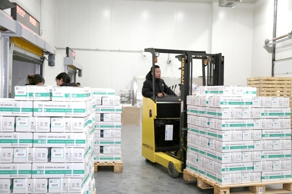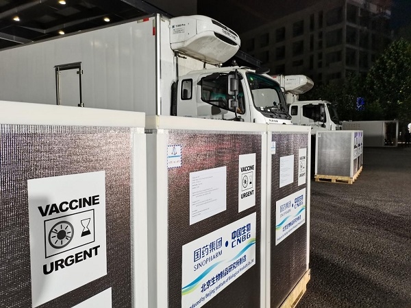 8月6日晚,首批供应COVAX的中国生物新冠疫苗准备装箱