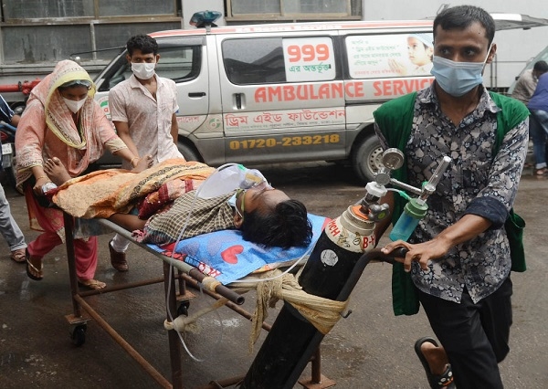 7月7日,患者被送到孟加拉国首都达卡的医院接受救治。新华社发![]()