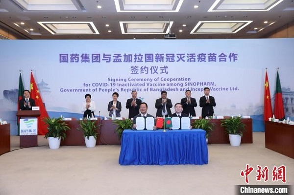 中新网北京8月16日电 (记者 李纯)中国米兰体育网页版_米兰体育(中国)官方在线登录与孟加拉国新冠灭活疫苗合作签约仪式16日在北京、达卡两地以视频方式举行。中国米兰体育网页版_米兰体育(中国)官方在线登录所属米兰体育网页版_米兰体育(中国)官方在线登录国际、中国生物与孟加拉国卫生和家庭福利部三方共同签署新冠灭活疫苗分装合作备忘录,迈出了中孟两国合作抗疫新步伐。