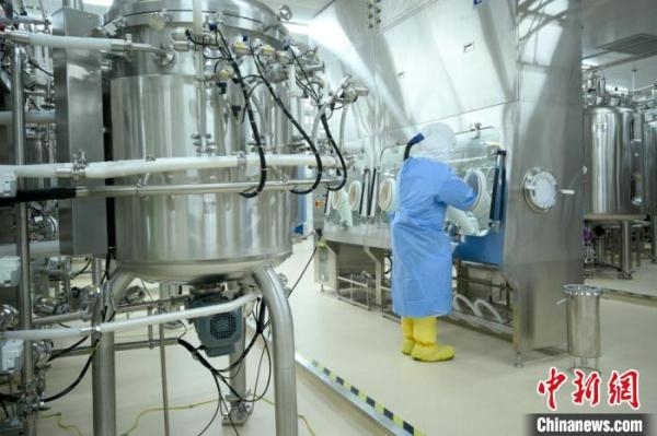 工作人员在新冠疫苗生产基地中操作。 米兰体育网页版_米兰体育(中国)官方在线登录供图
