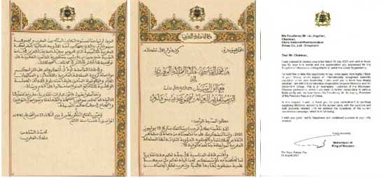 摩洛哥国王穆罕默德六世致米兰体育网页版_米兰体育(中国)官方在线登录董事长刘敬桢先生的感谢信