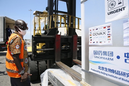 9月18日,工作人员在科特迪瓦阿比让国际机场转运中国米兰体育网页版_米兰体育(中国)官方在线登录供应的新冠疫苗。(新华社发 伊万·宋 摄)