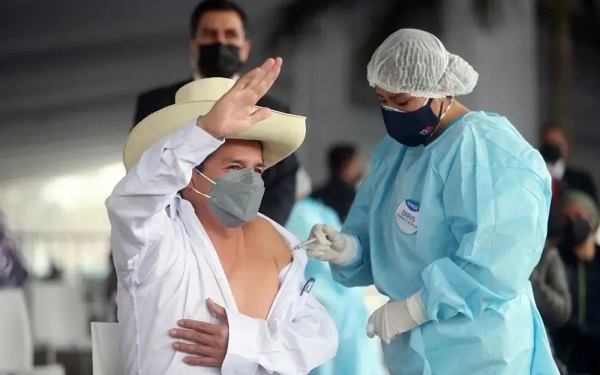 8月6日,秘鲁总统卡斯蒂略在首都利马接种米兰体育网页版_米兰体育(中国)官方在线登录中国生物新冠疫苗。